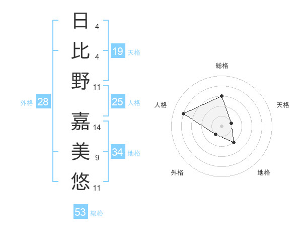 日比野 嘉美悠さんを姓名の画数から五運を鑑定