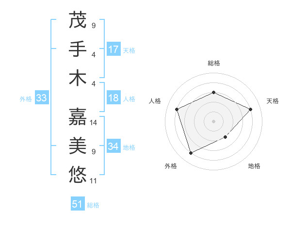 茂手木 嘉美悠さんを姓名の画数から五運を鑑定