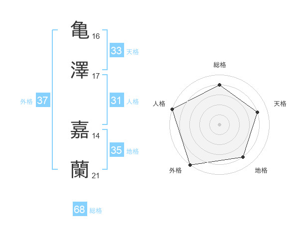 亀澤 嘉蘭さんを姓名の画数から五運を鑑定
