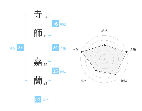 寺師 嘉蘭さんの総格は51画の3点!