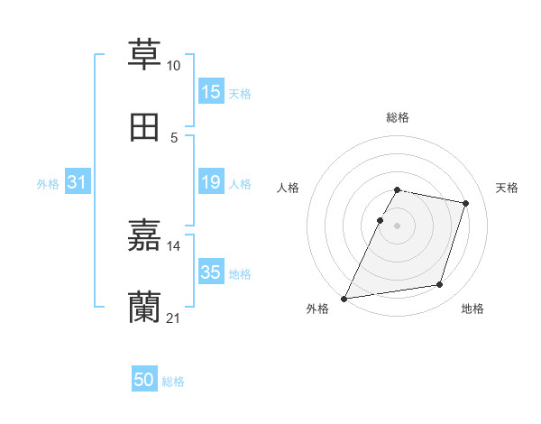 草田 嘉蘭さんの外格は31画の5点!