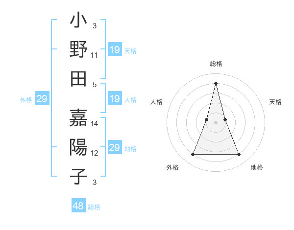 小野田 嘉陽子さんの外格は29画の4点!