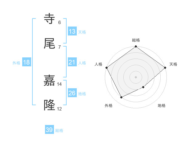 寺尾 嘉隆さんを姓名の画数から五運を鑑定