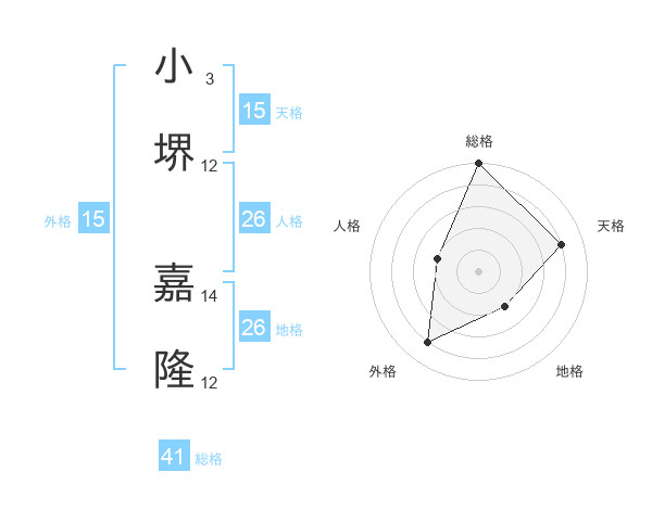 小堺 嘉隆さんを姓名の画数から五運を鑑定