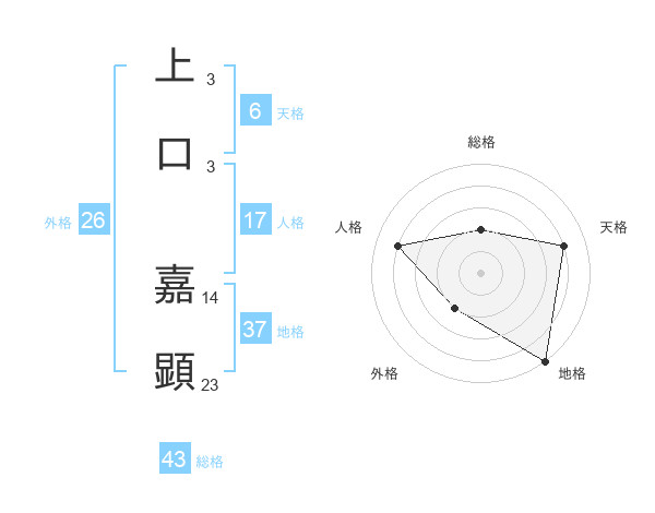 上口 嘉顕さんの地格は37画の5点!