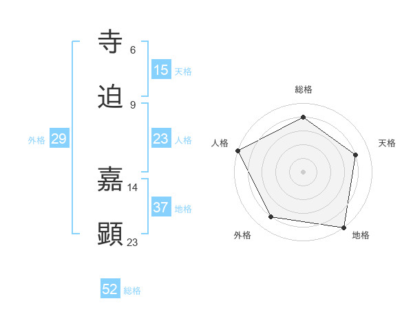寺迫 嘉顕さんの総格は52画の4点!