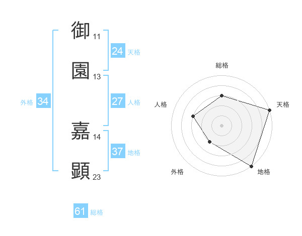 御園 嘉顕さんを姓名の画数から五運を鑑定