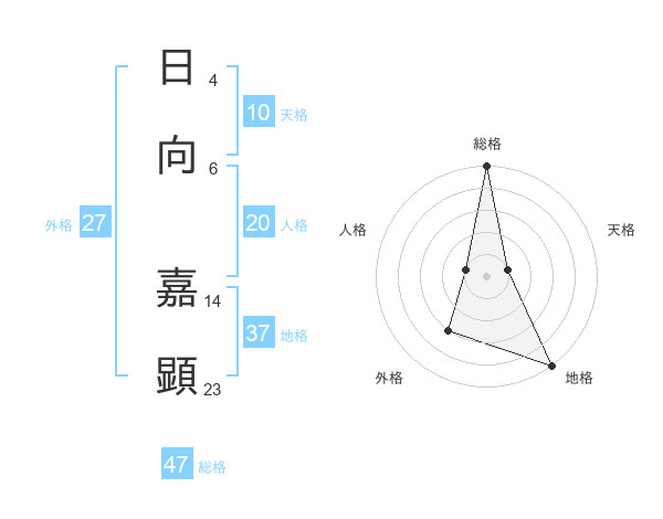 日向 嘉顕さんを姓名の画数から五運を鑑定