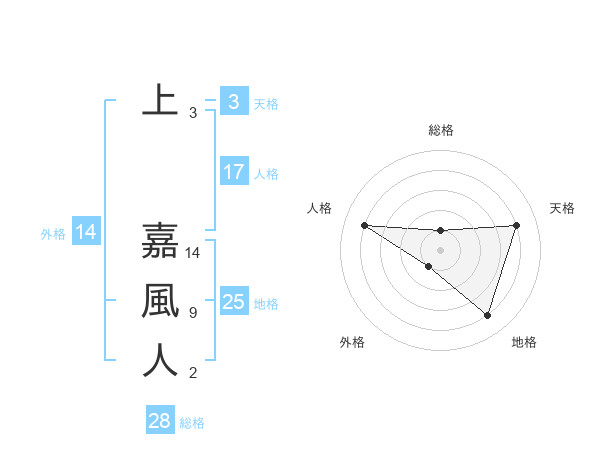 上 嘉風人さんを姓名の画数から五運を鑑定