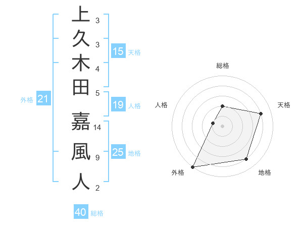 上久木田 嘉風人さんを姓名の画数から五運を鑑定
