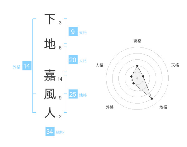 下地 嘉風人さんを姓名の画数から五運を鑑定