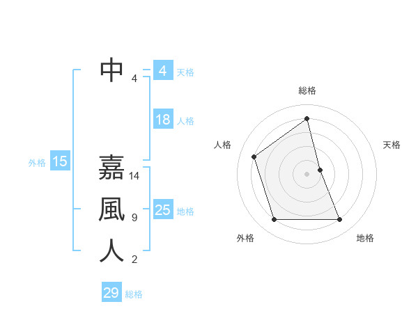 中 嘉風人さんを姓名の画数から五運を鑑定