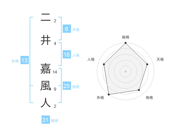 二井 嘉風人さんを姓名の画数から五運を鑑定