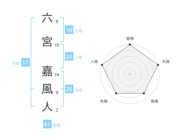 六宮 嘉風人さんを姓名の画数から五運を鑑定