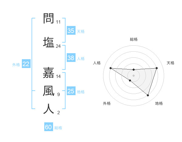 問塩 嘉風人さんの総格は60画の1点!