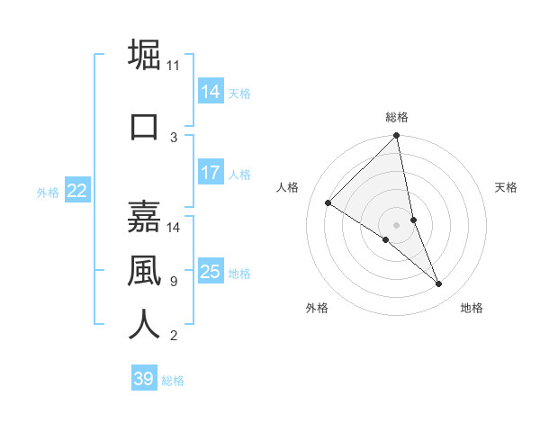 堀口 嘉風人さんの総格は39画の5点!