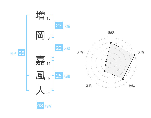 増岡 嘉風人さんを姓名の画数から五運を鑑定