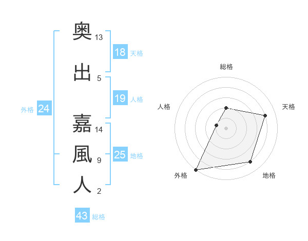 奥出 嘉風人さんを姓名の画数から五運を鑑定