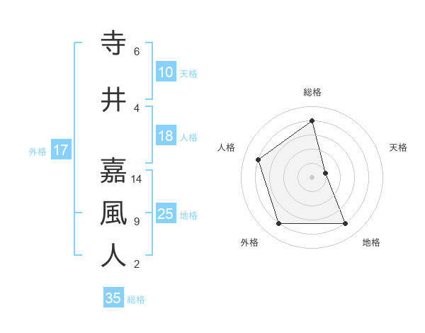 寺井 嘉風人さんの総格は35画の4点!