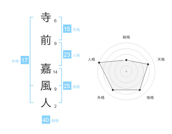 寺前 嘉風人さんの地格は25画の4点!
