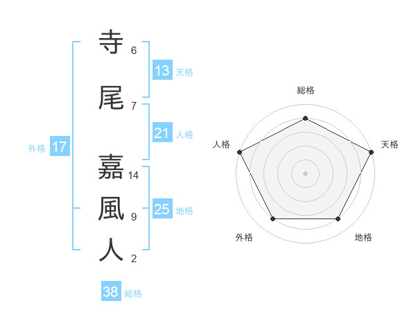 寺尾 嘉風人さんの総格は38画の4点!