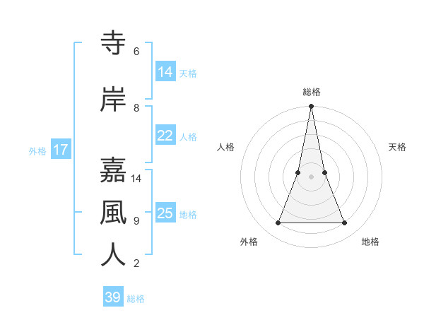 寺岸 嘉風人さんを姓名の画数から五運を鑑定