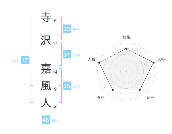 寺沢 嘉風人さんを姓名の画数から五運を鑑定