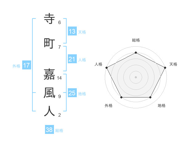 寺町 嘉風人さんを姓名の画数から五運を鑑定