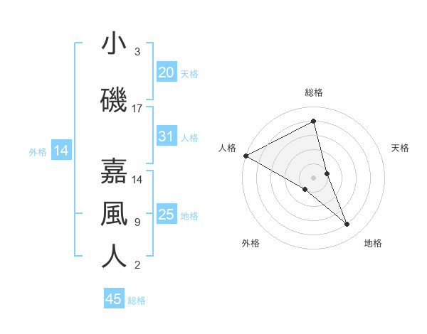 小磯 嘉風人さんの総格は45画の4点!
