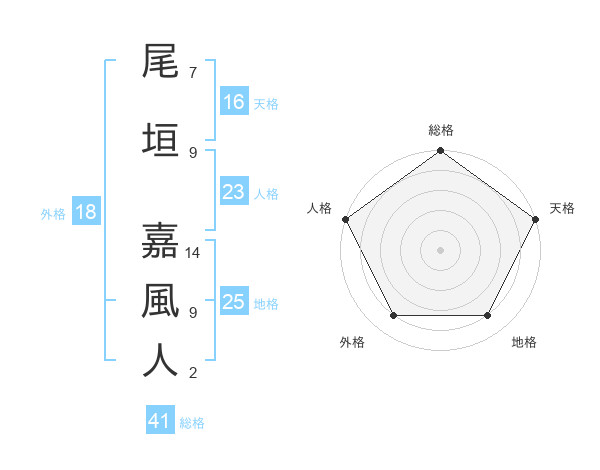 尾垣 嘉風人さんを姓名の画数から五運を鑑定