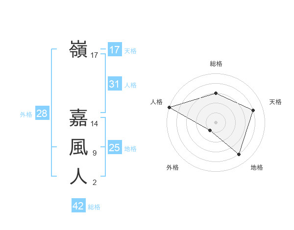 嶺 嘉風人さんの人格は31画の5点!