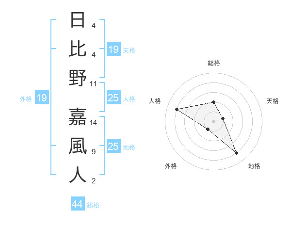 日比野 嘉風人さんを姓名の画数から五運を鑑定