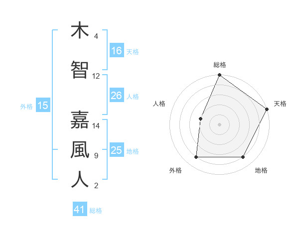 木智 嘉風人さんを姓名の画数から五運を鑑定