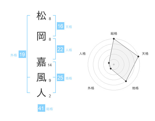 松岡 嘉風人さんの総格は41画の5点!