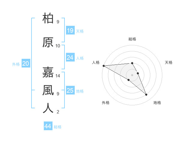 柏原 嘉風人さんの総格は44画の2点!