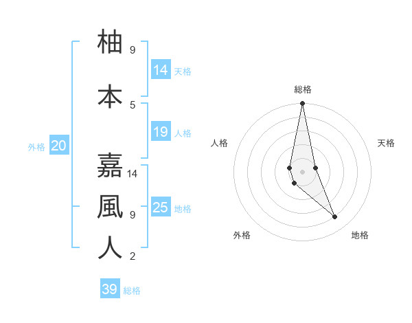 柚本 嘉風人さんの総格は39画の5点!