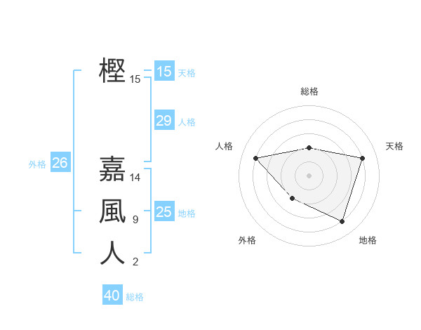 樫 嘉風人さんの地格は25画の4点!