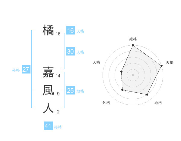 橘 嘉風人さんを姓名の画数から五運を鑑定