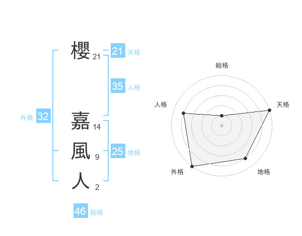 櫻 嘉風人さんの外格は32画の5点!