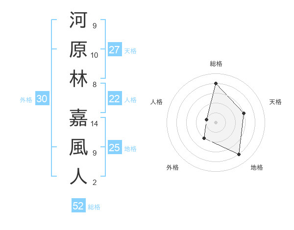 河原林 嘉風人さんを姓名の画数から五運を鑑定