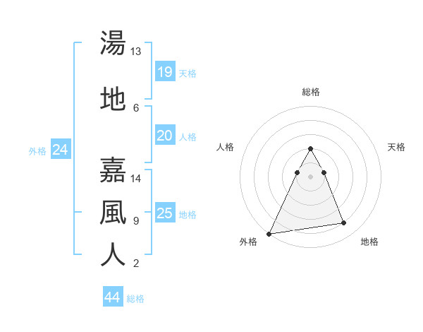 湯地 嘉風人さんの総格は44画の2点!