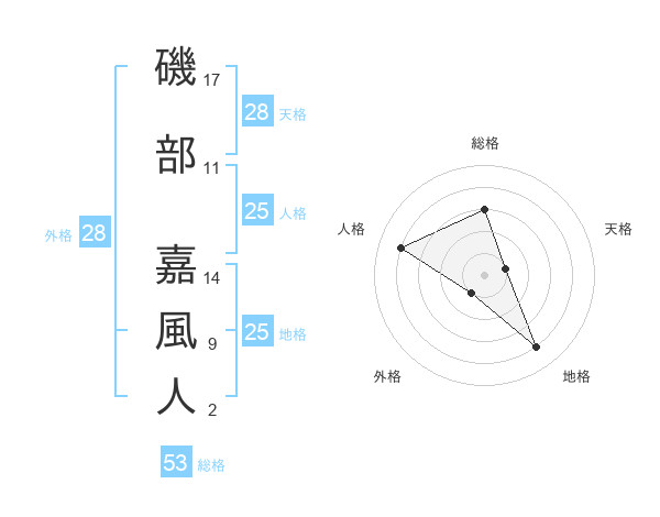 磯部 嘉風人さんを姓名の画数から五運を鑑定