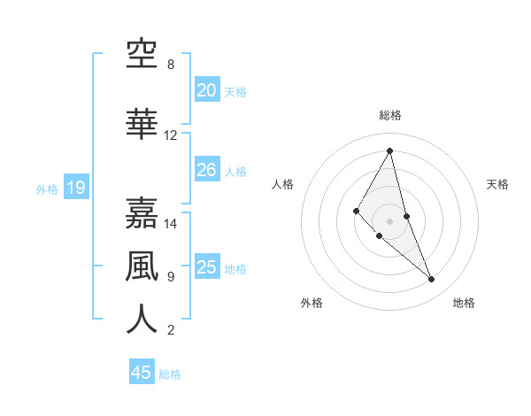 空華 嘉風人さんを姓名の画数から五運を鑑定