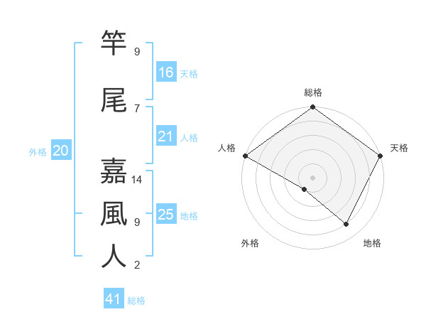 竿尾 嘉風人さんの地格は25画の4点!