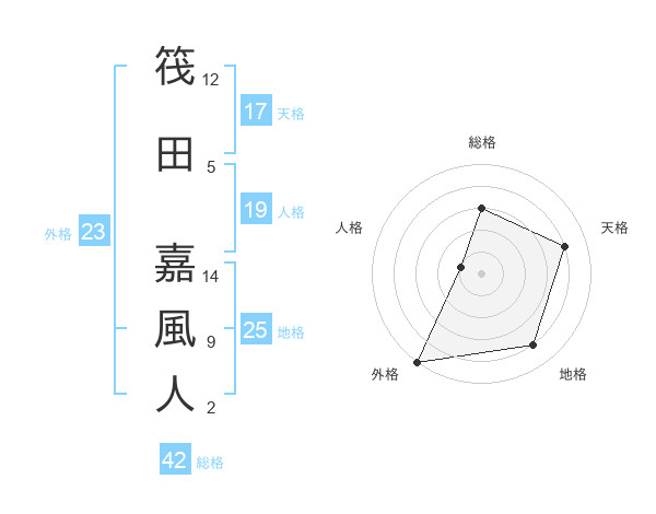 筏田 嘉風人さんの外格は23画の5点!