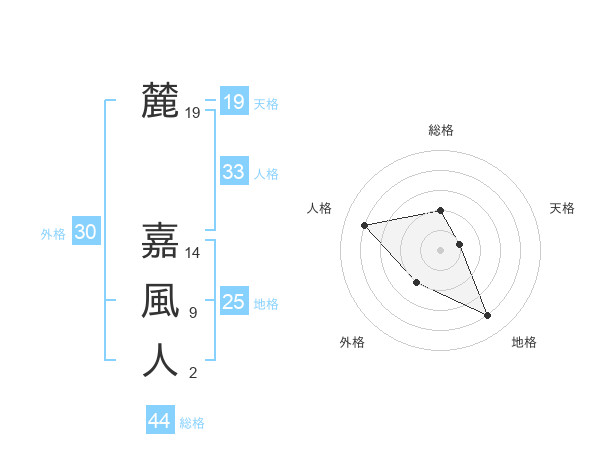 麓 嘉風人さんを姓名の画数から五運を鑑定