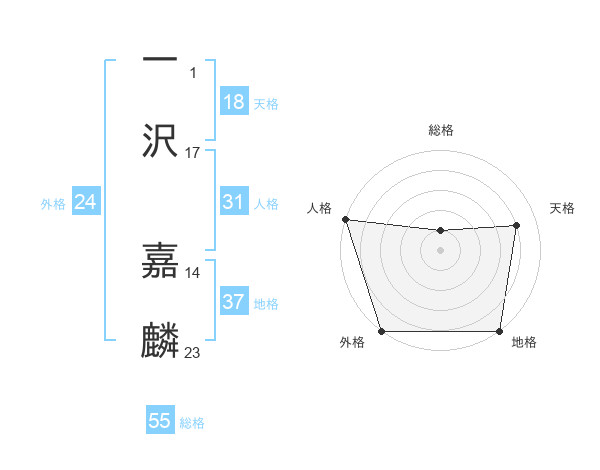 一沢 嘉麟さんの総格は55画の1点!