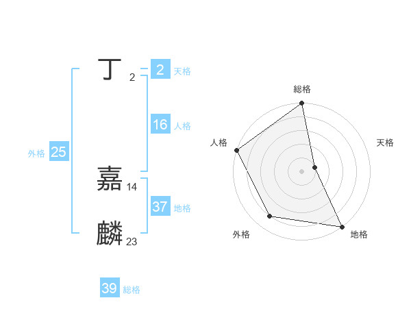 丁 嘉麟さんの地格は37画の5点!