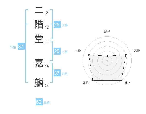 二階堂 嘉麟さんの外格は37画の5点!