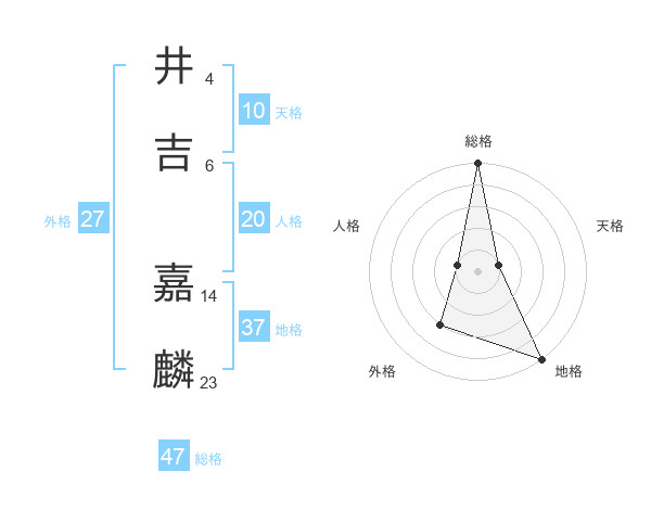 井吉 嘉麟さんの総格は47画の5点!
